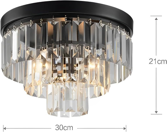 Ukran Flush Black 3 Tier Crystal Chandelier Small 30cm