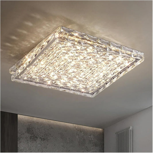 Ville Square Crystal Flush Ceiling Light - Chrome